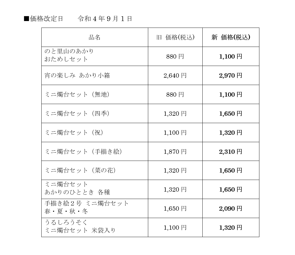 大変心苦しいお願いではございますが、価格の改定につきましてもご理解いただきますようお願い申し上げます。